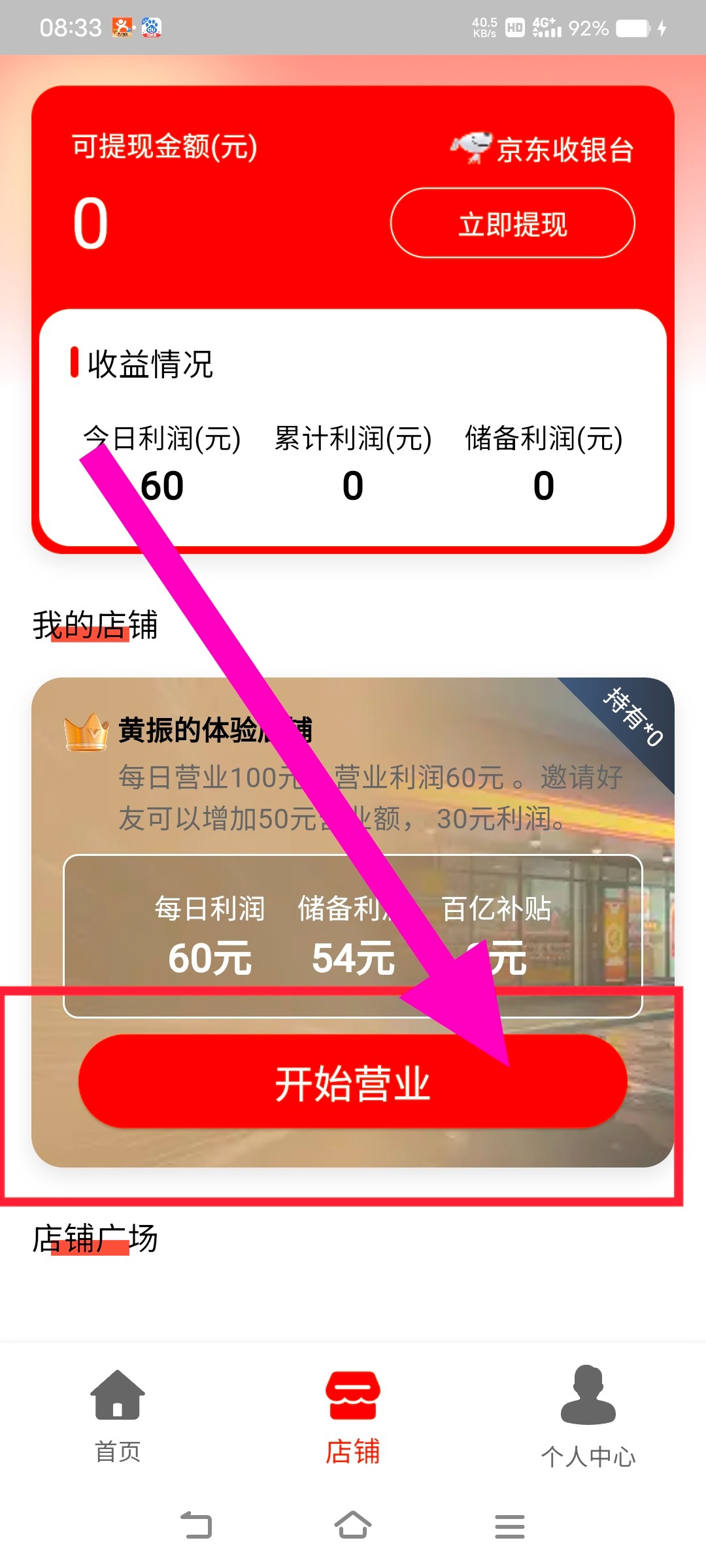 2.每天点一下开店即可