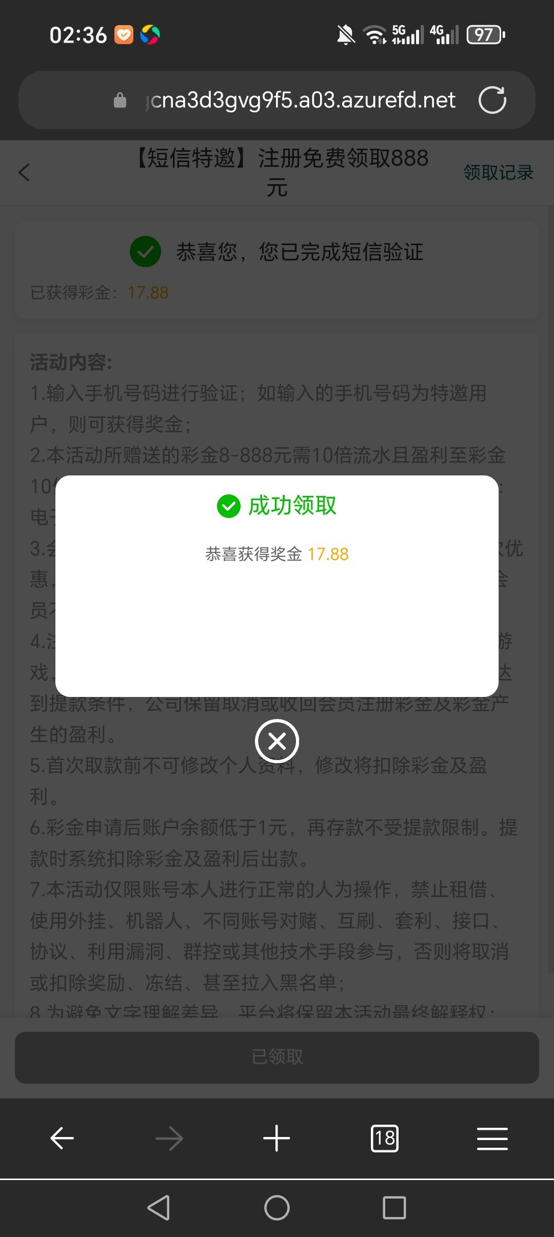 发短信让我去领的