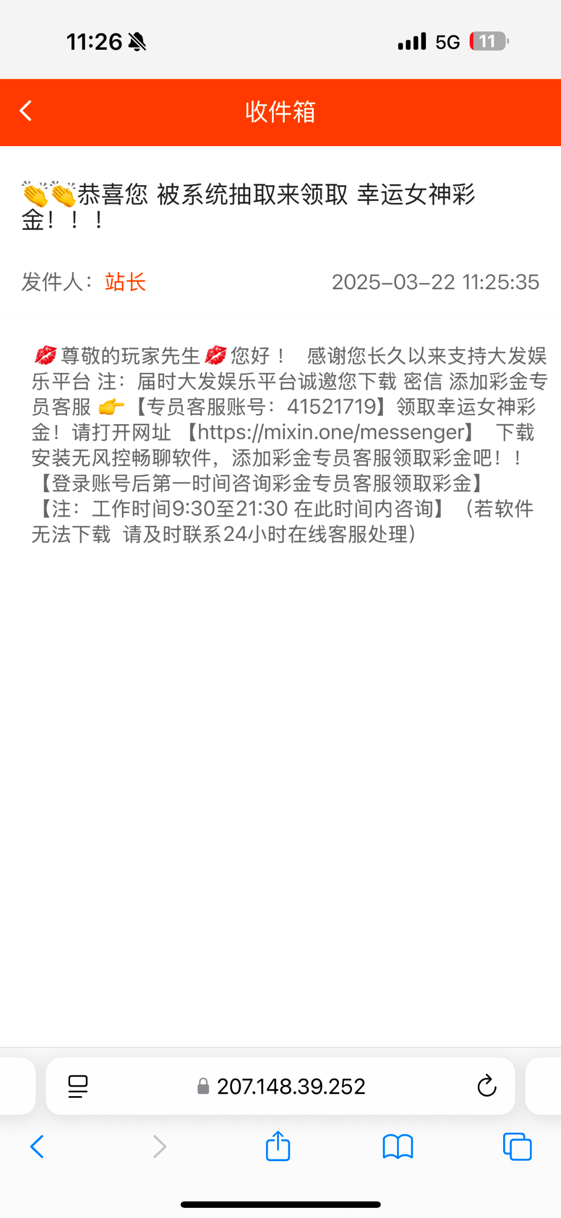 【大发989】站内信送彩金