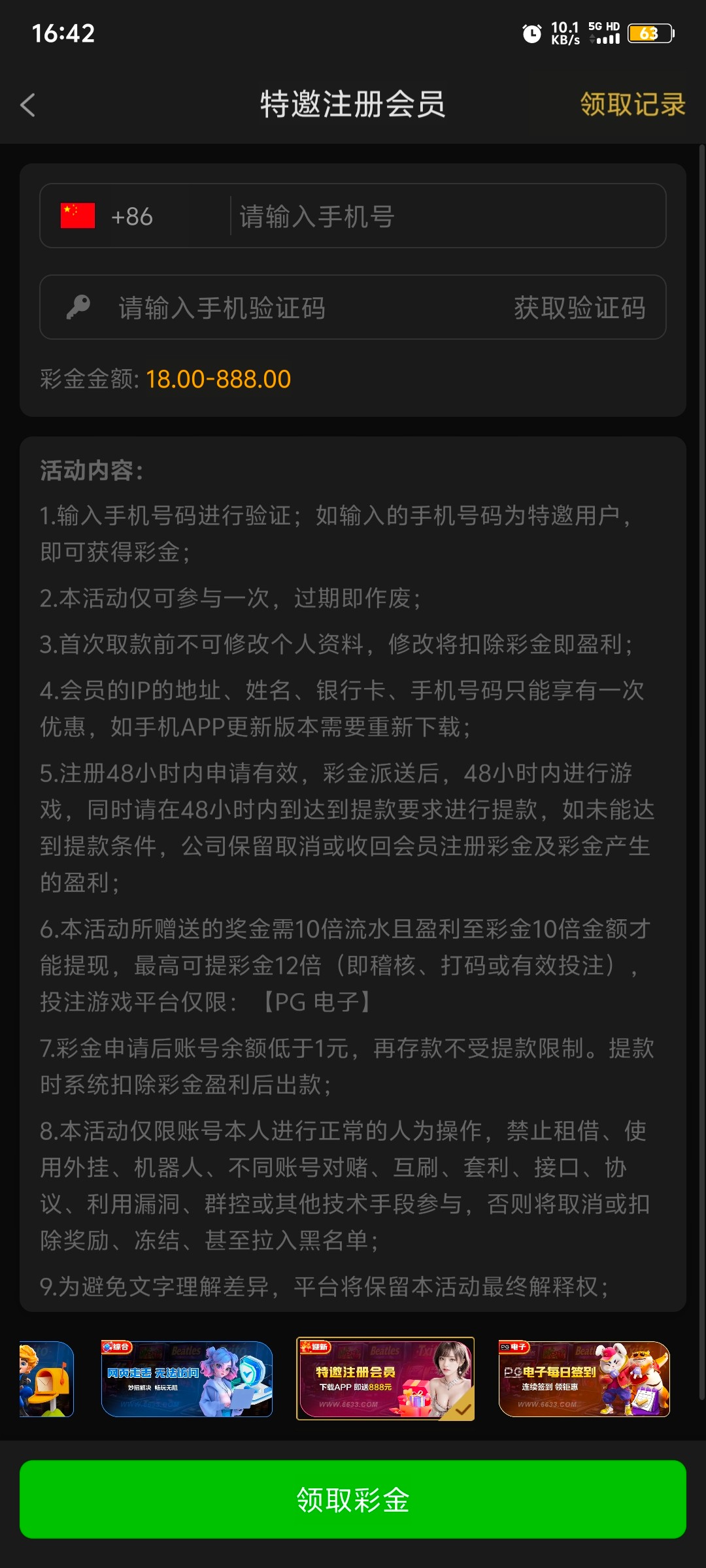 注册绑定提款和手机号,去活动大厅自助申请彩金